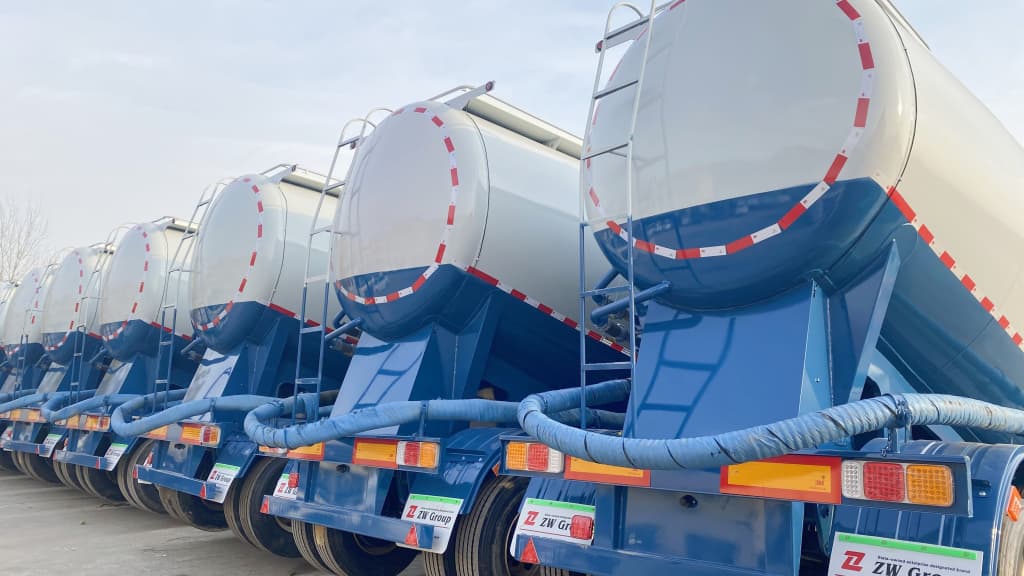 Ideal for transporting cement and other bulk materials, this tanker trailer is commonly used in construction sites and cement factories. It is equipped with features that ensure easy discharge and safe transportation of bulk goods over long distances.