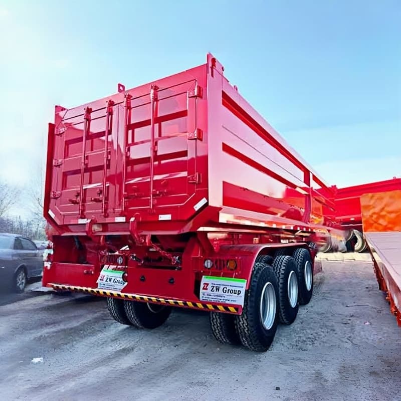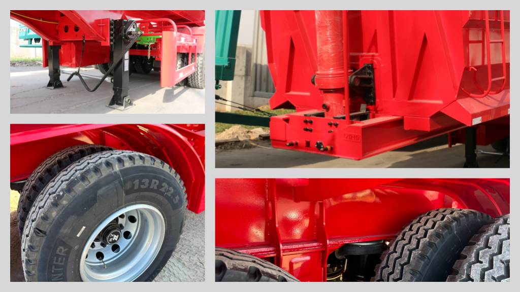 The chassis is engineered with Q345B steel, featuring a 500mm main beam height reinforced for extra rigidity. This Tipping Trailer is equipped with reliable 13-ton axles and a dual-line braking system to guarantee safety during long-haul transport. We understand that every project is unique, so the dimensions, paint color, and axle configurations are fully customizable to client requirements, offering you a tailored solution that fits your specific operational needs perfectly.