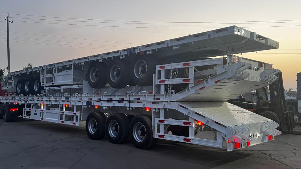 Common use cases include regional and cross-border transport of 40ft containers, machinery and oversized palletized goods, plus ad-hoc heavy cargo moves where a deck/platform trailer is required. Ideal for fleet operators and leasing companies who need a versatile container-ready deck trailer that can be tailored to route-specific payloads.