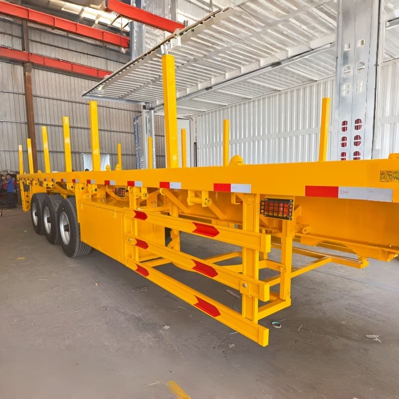 This Highbed Trailer is essential for logistics companies requiring dual-purpose efficiency: it transports standard ISO shipping containers (20ft/40ft) using integrated twist locks and securely hauls long, round cargo like steel pipes, logs, and rebar using the removable side stakes. Construction and industrial fleets rely on this Side Wall Semi Trailer configuration to safely navigate rough terrain while maintaining high load stability for oversized building materials.
