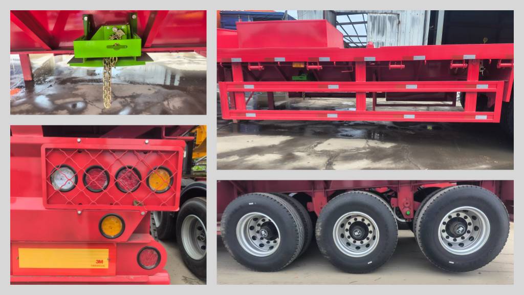 A: We can stack 3 units of flatbed trailers together to save space for Bulk/Ro-Ro shipments. Alternatively, we can design the rear end to be bolted, allowing the trailer to fit inside a 40ft HQ container to significantly reduce freight costs.