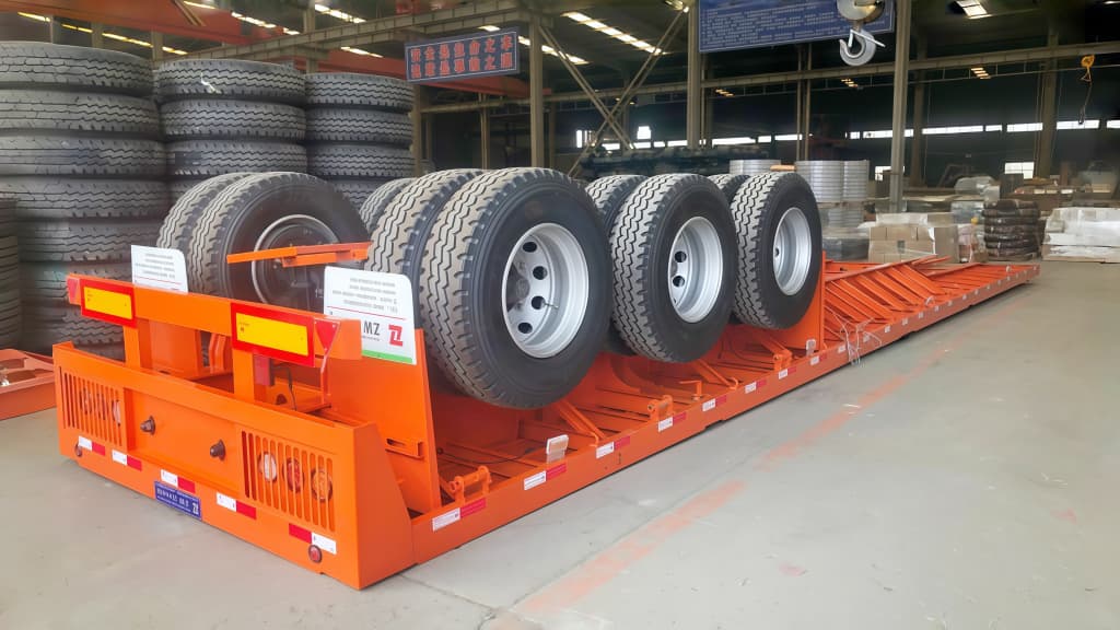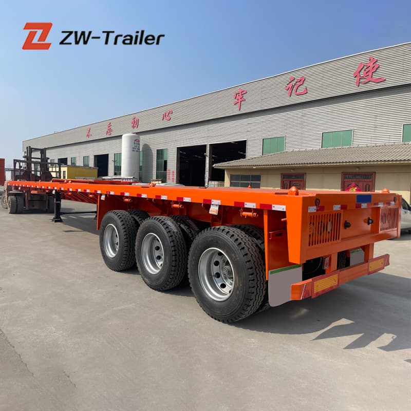 Reliability on the road is guaranteed by our premium running gear configuration. This 3 axle trailer is equipped with heavy-duty 13T/16T axles (ZW Brand, FUWA, or BPW optional) and a mechanical leaf spring suspension system (10/10/10) that effectively absorbs road shock. We install 12 units of wear-resistant 12R22.5 tubeless tires, designed for long-haul durability and heat dissipation. Whether you call it a highbed trailer or a flat deck, our system ensures your cargo reaches its destination safely.