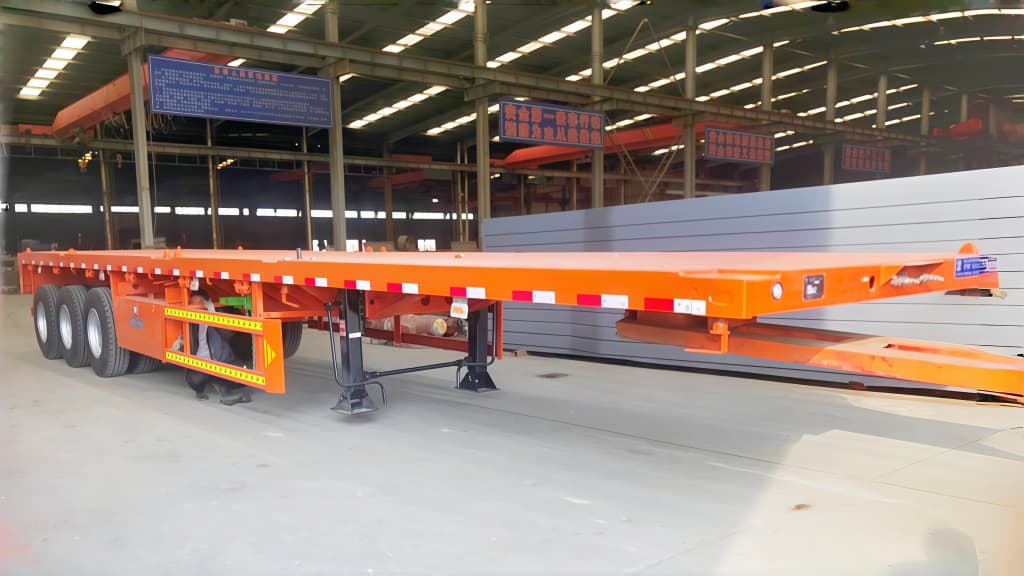 Designed for multimodal transport efficiency, this container chassis securely accommodates 1x40ft or 2x20ft shipping containers via 12 sets of twist locks, while also handling bulk loads like steel coils, lumber, and bagged cement. Our heavy-duty flat deck trailer is the preferred choice for logistics fleets operating in construction sites and ports where high stability and durability are critical.