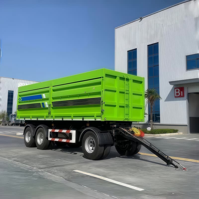 The Full Drawbar Side Tipper Semi Trailer is designed for optimal performance in challenging environments. With a 60-ton load capacity and three durable axles, it ensures efficient transport of heavy materials with maximum stability. Its large volume design allows it to carry a substantial amount of goods, making it perfect for construction, mining, and other large-scale operations. Additionally, this semi-trailer can be customized to suit the specific needs of customers, including modifications in size and configuration.
