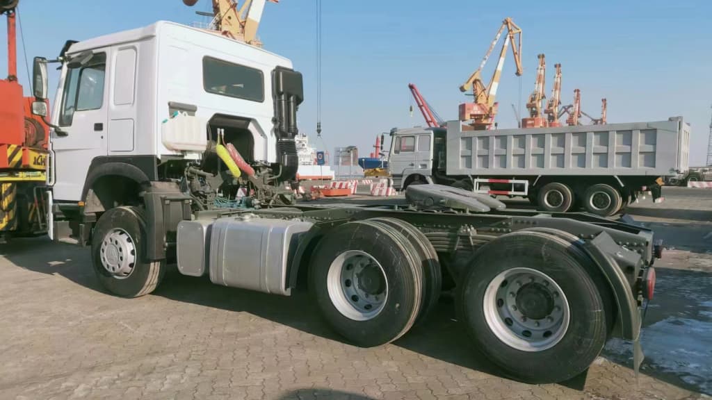 Common use cases include long-distance container haulage and heavy-load construction transport where high horsepower and sustained range are required. This tractor/prime mover is also commonly specified for bulk freight, road-train, and heavy-equipment towing due to its high payload capability and optional heavy-axle configurations.