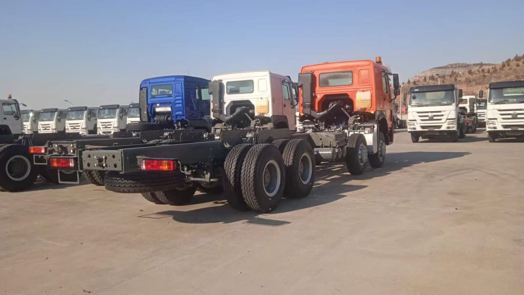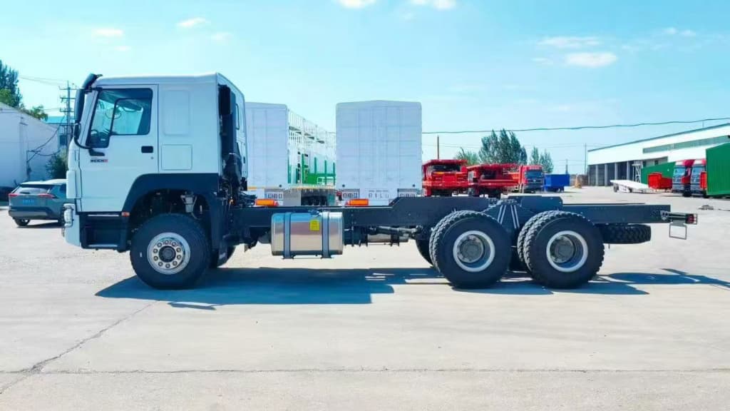 The HOWO 400HP tractor typically uses a WP12 series 11.596 L engine (examples: WP12S400 / WP12.400), paired with a heavy-duty HW19710 transmission (commonly 10F+2R). With 400 HP (~298.3 kW) and typical torque in the upper range for WP12 family (configuration dependent), the truck delivers the pulling power needed for 35–60 tonne gross loads depending on axle and gearing choices. Advantages: strong engine output and robust transmission for sustained heavy haulage.