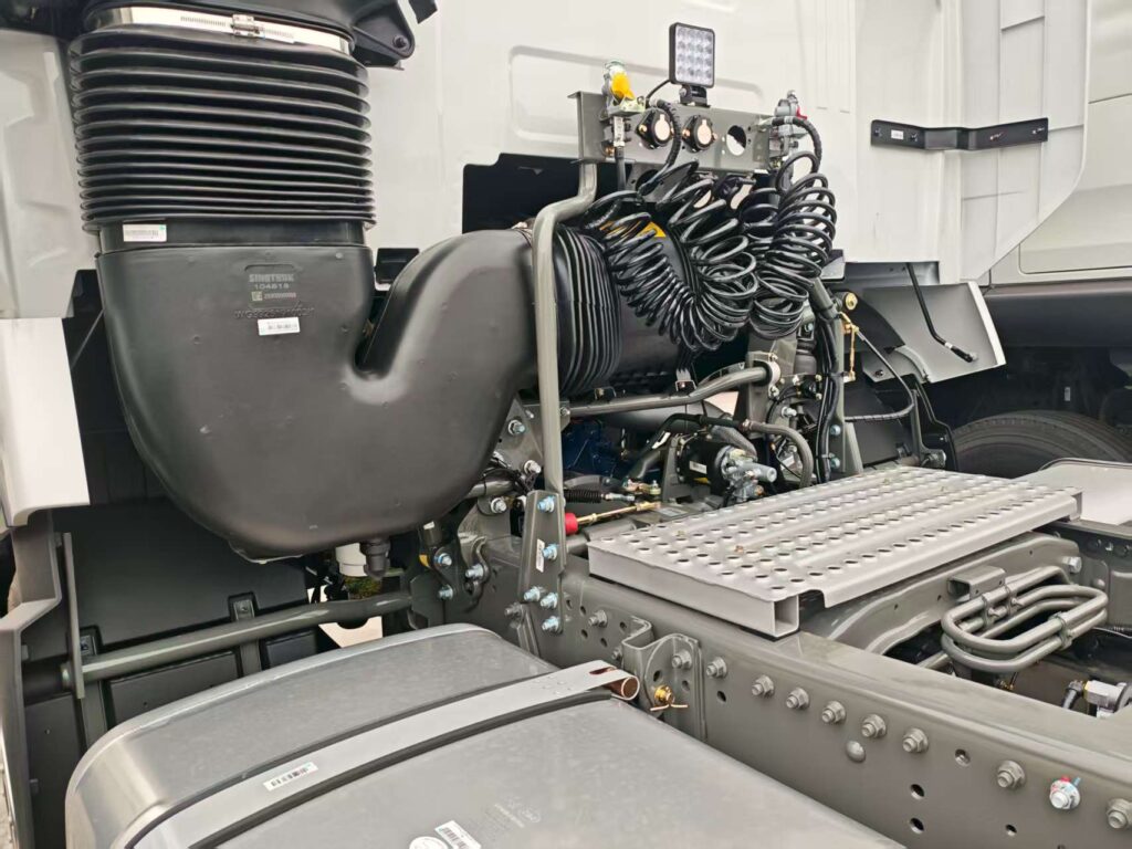 Built around a high-strength U-profile ladder frame (300×90×8mm section) with cold-riveted cross members and reinforced sections, the HOWO 430HP tractor provides a stable platform for heavy trailers and tough road conditions. The WD615.96E 9.726L turbocharged inline-6 engine (EURO 3) delivers 430 HP with efficient direct injection (fuel consumption ~193 g/kWh), paired with a Fuller 12-speed gearbox and SINOTRUK Φ430mm clutch to ensure smooth power delivery and robust drivability under load.