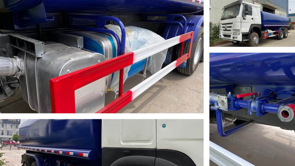 For operational features, most commercial HOWO tankers offer carbon-steel / aluminum / stainless tank materials, multi-nozzle spray systems, rear work platform with water cannon, and pump options delivering ~60–120 m³/h (depending on pump spec). Advantages: strong driveline (high HP), large configurable tank capacity, and modular pump/spray systems — all of which make these trucks flexible for export or domestic municipal fleets.