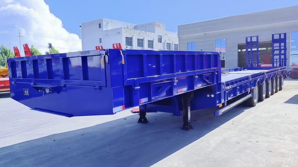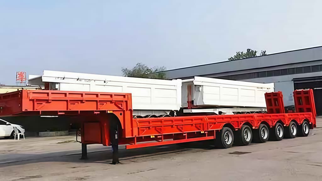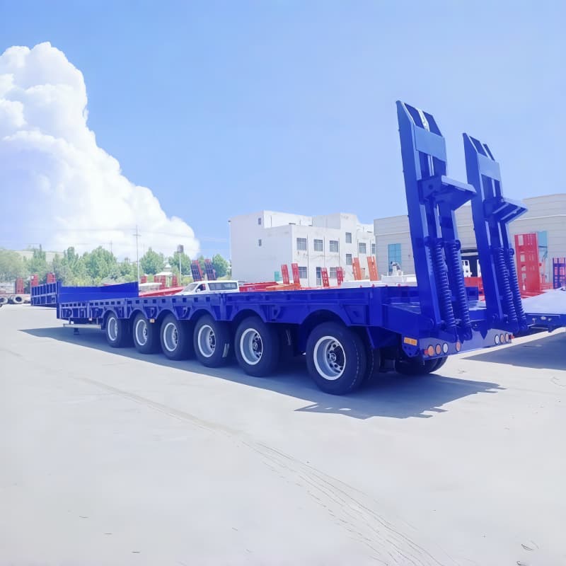 Designed for extreme heavy-duty transport, this Lowbed Semi Trailer features a robust 6-axle configuration that guarantees a massive 90t loading capacity and superior stability.