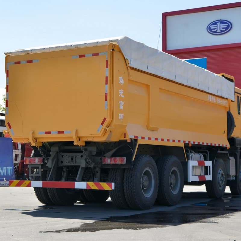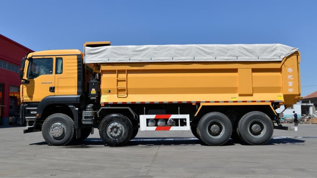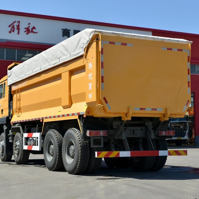 The body and frame options for the G7 8×4 typically furnish long cargo boxes (common lengths 5.8–7.6 m) and U-shape or rectangular bodies that give large payload volumes (≈18–24 m³ depending on box) and GVW in the high 30- to low-40-ton range (configurable per spec and regional regulation). Robust axles (dual front axles or 2× front with twin rear setups) and heavy tyre specs (e.g., 11.00R20 / 12.00R20 / 315/80R22.5 variants) complete the heavy-duty package.