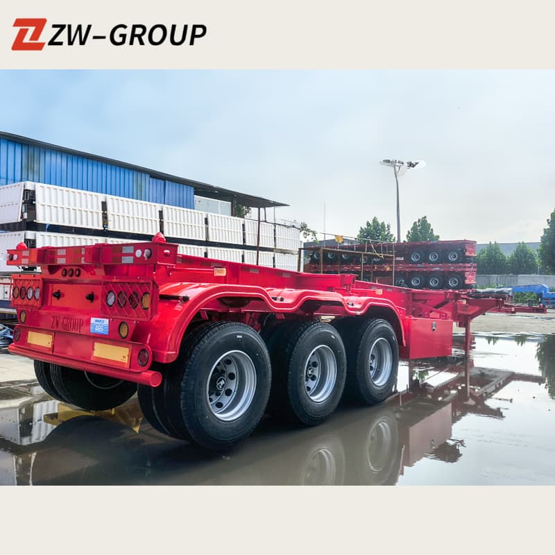 Common use cases include long-distance container hauling for shipping terminals, intermodal transfer between ports and inland depots, and fleet operators needing a flexible chassis for mixed container sizes. The skeletal (also called container chassis / skeleton trailer / chassis trailer) design lets operators maximize payload and speed up cargo handling.
